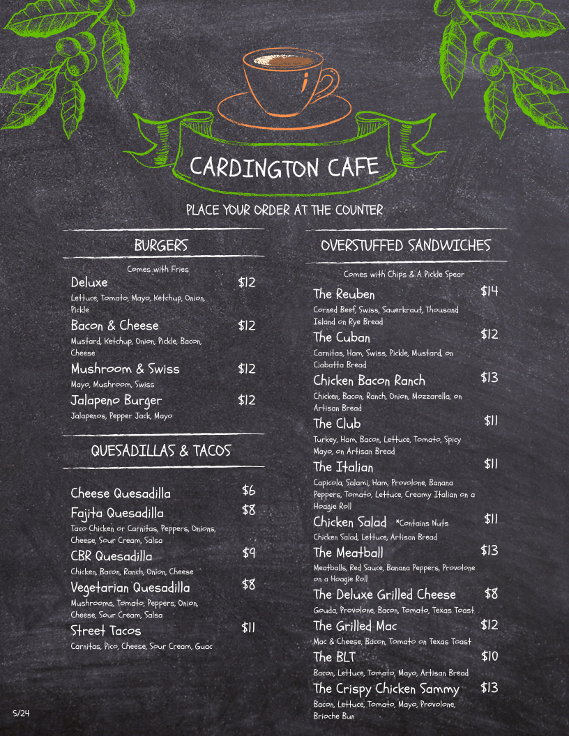 The menu at Cardington Cafe offers a relaxed, approachable selection that balances comforting café classics with casual dining favorites. Whether you’re stopping by for a morning pick-me-up or a laid-back lunch, you’ll find familiar flavors crafted to feel fresh and satisfying.